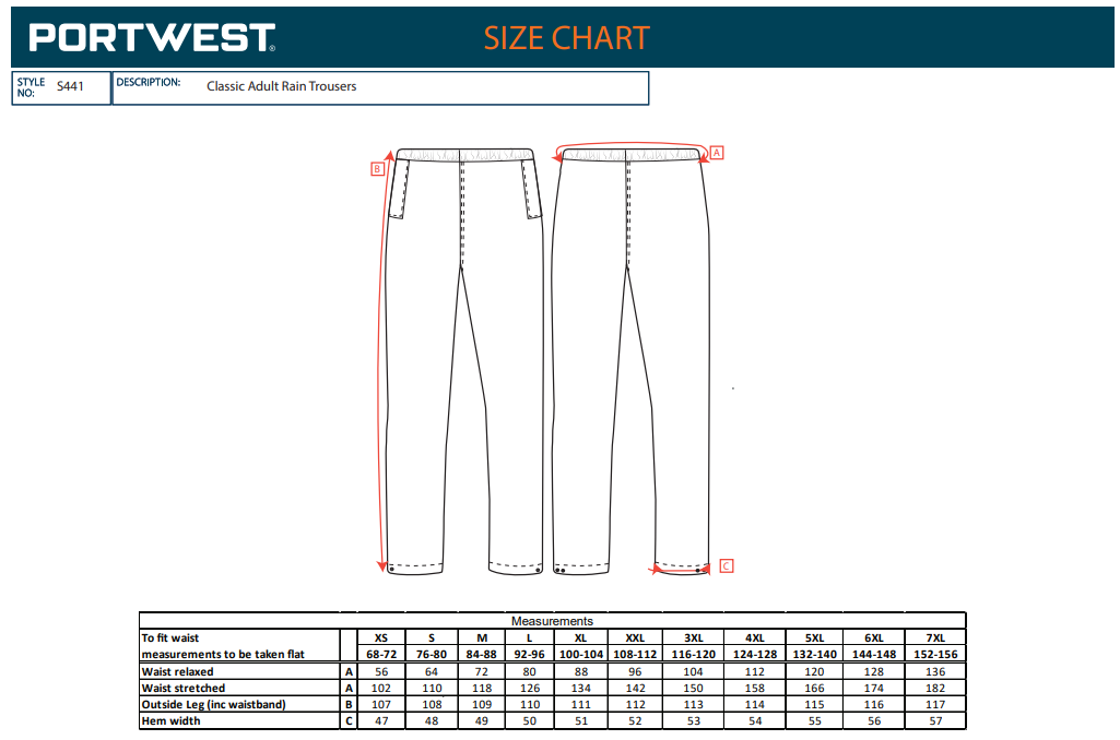 Portwest S441 - Classic Rain Trousers S441
