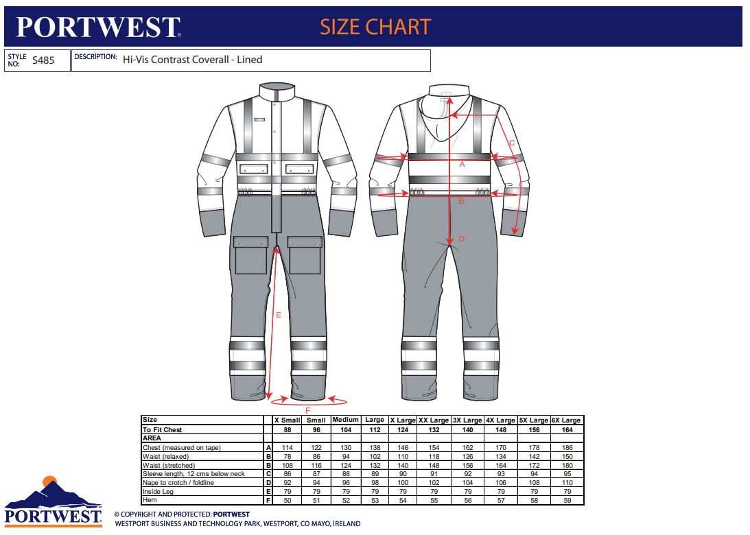 Product Datasheet - https://documents.portwest.com/datasheet.php?style=S485&lang=GB&itemcol=S485ONR&facility=902