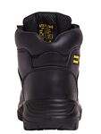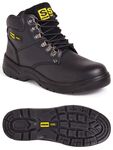 Black full grain leather safety boot. Padded collar and tongue for added comfort. Steel toe cap and steel midsole protection. Dual density polyurethane outsole. Anti-static. A very popular traditional lightweight safety boot for most industries.